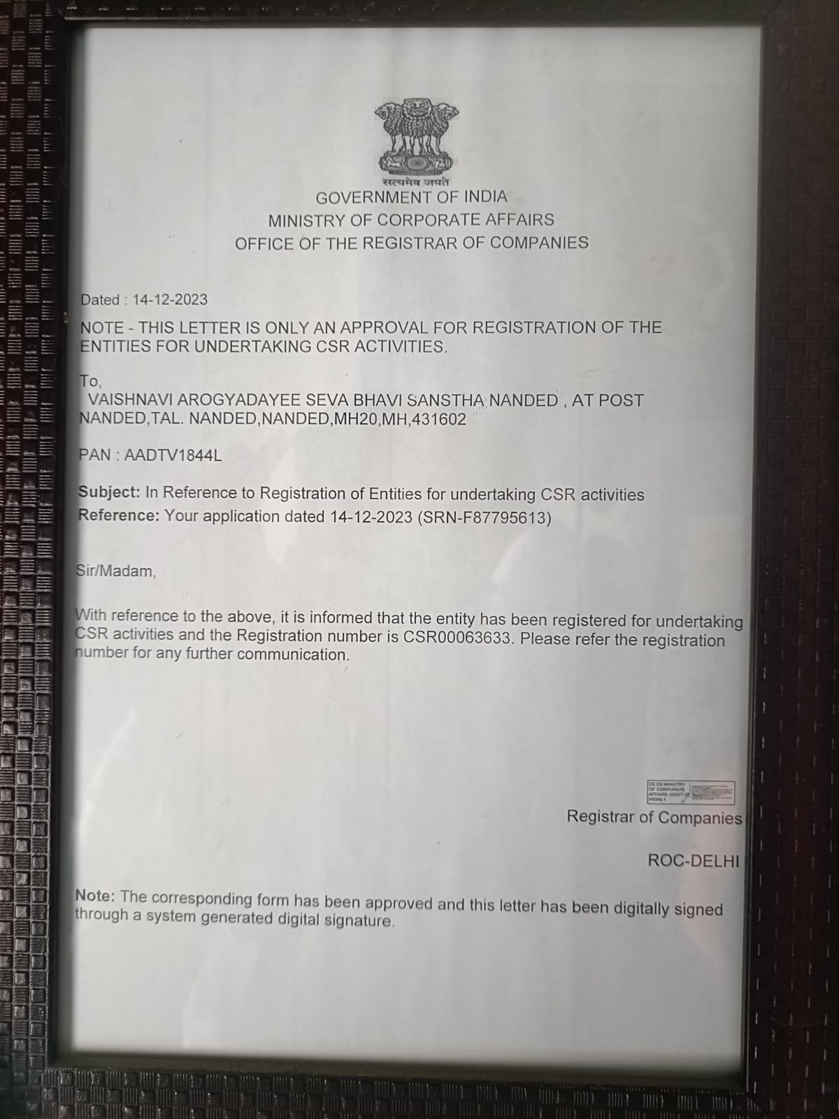 Registration Certificate